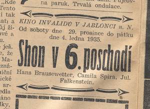 Inzerát v šanghajských novinách na premieru filmu Jánošík (1935), který se promítal ve 36 státech světa.